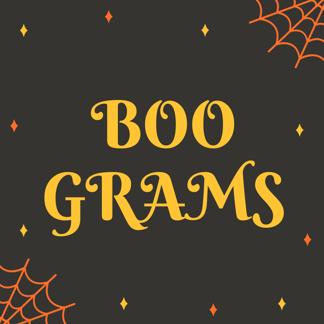 Boo Grams are a fun way to tell your child, friend or teacher Happy Halloween and surprise them with a special note and treat! $5 per gram -  MAX TWO GRAMS while supplies last! Boo Grams are only available for purchase online from 10/17- 10/24 and will be distributed to the classrooms by 10/29